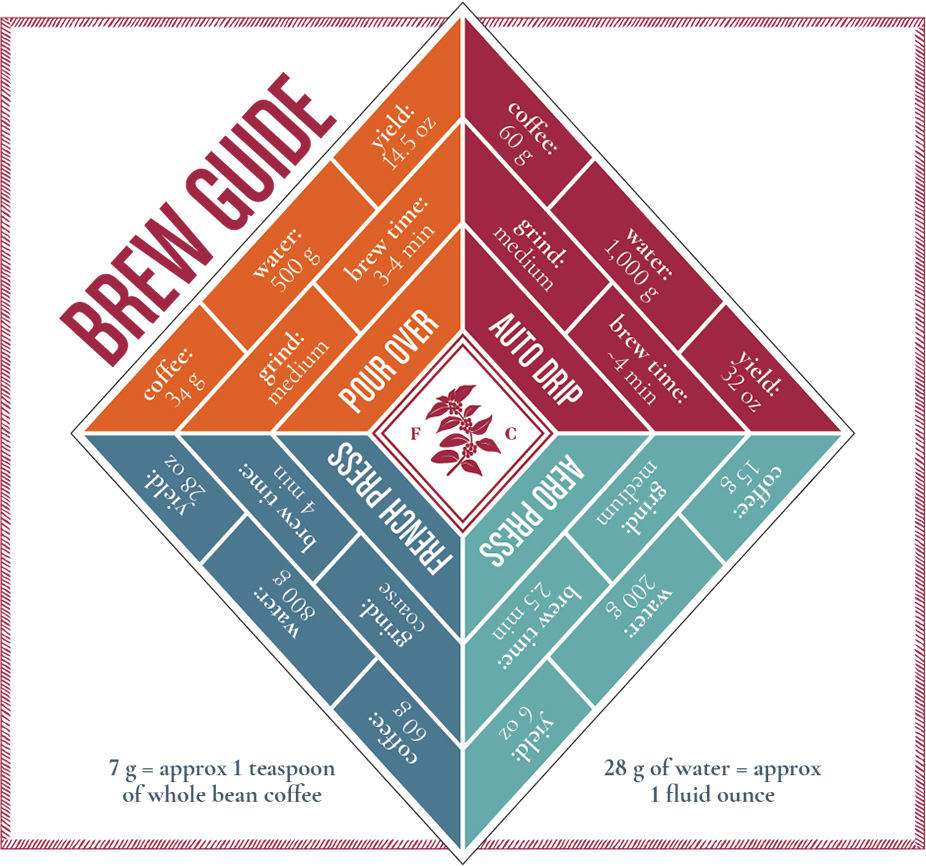 Welcome to the FRINJ home brew guides. For those FRINJ.com readers and brewers. Here are simplified guides to get you started on your own coffee brewing experience. Ultimately you should explore the coffee and refine your brew technique to what works best for you and those you are brewing for. The brew tools and techniques are selected for amount of brew servings and to explore a variety of brew technologies. The guides assumes you have a good burr coffee grinder, quality water and water heating capabilities. Take a look, at our brew diamond for a quick reference tool.